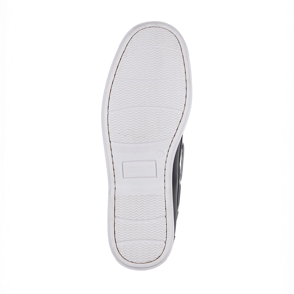 Crafted with meticulous attention to detail, our Samuel Windsor Navy Deck Shoes combine superior leather with expert handmade craftsmanship. Made from premium navy leather and fully leather-lined, they provide lasting comfort and breathability. Featuring hand-stitched detailing and a non-marking rubber sole for reliable grip, these deck shoes deliver timeless style and exceptional durability. Experience the quality that defines Samuel Windsor. BV496
